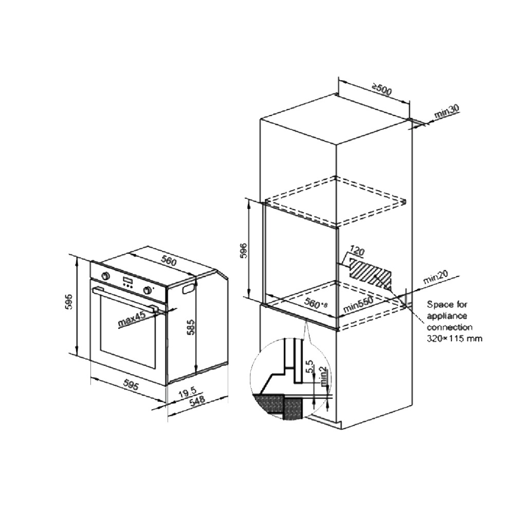 60CM built-in electric oven with 74L capacity & 8 cooking functions.