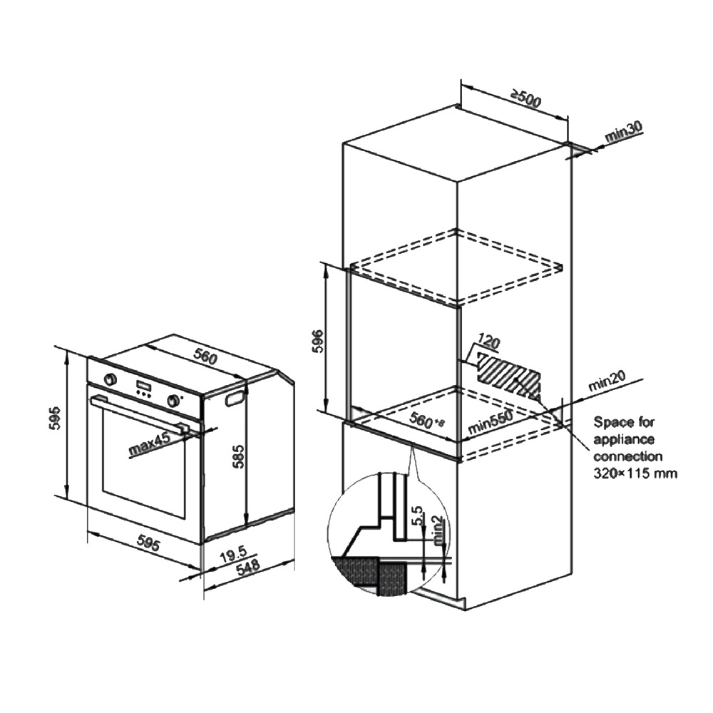 74L 60cm built-in oven with 13 versatile cooking functions including air fryer.