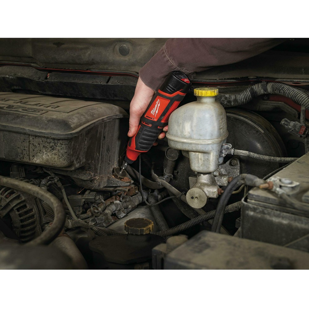 Flexible battery system: works with all MILWAUKEE M12 batteries.