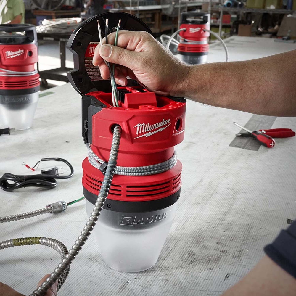 Milwaukee High Output Bay Light with TRUEVIEW™ high definition lighting - 7700 Lumens of even light output for best jobsite illumination (110 Lumens/Watt).